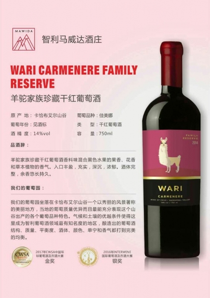 • 商标/品牌:智利原瓶进口羊驼家族珍藏干红葡萄酒
