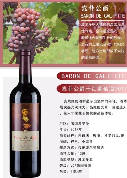 - 商标/品牌:嘉菲公爵干红葡萄酒