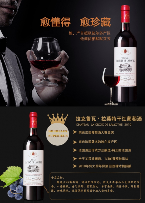 搭配菜肴:牛排/烤羊腿/红烧肉